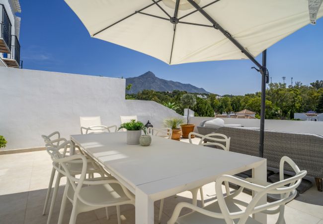 Vi är glada att kunna presentera detta utmärkta radhus för korttidsuthyrning i Los Naranjos de Marbella.
