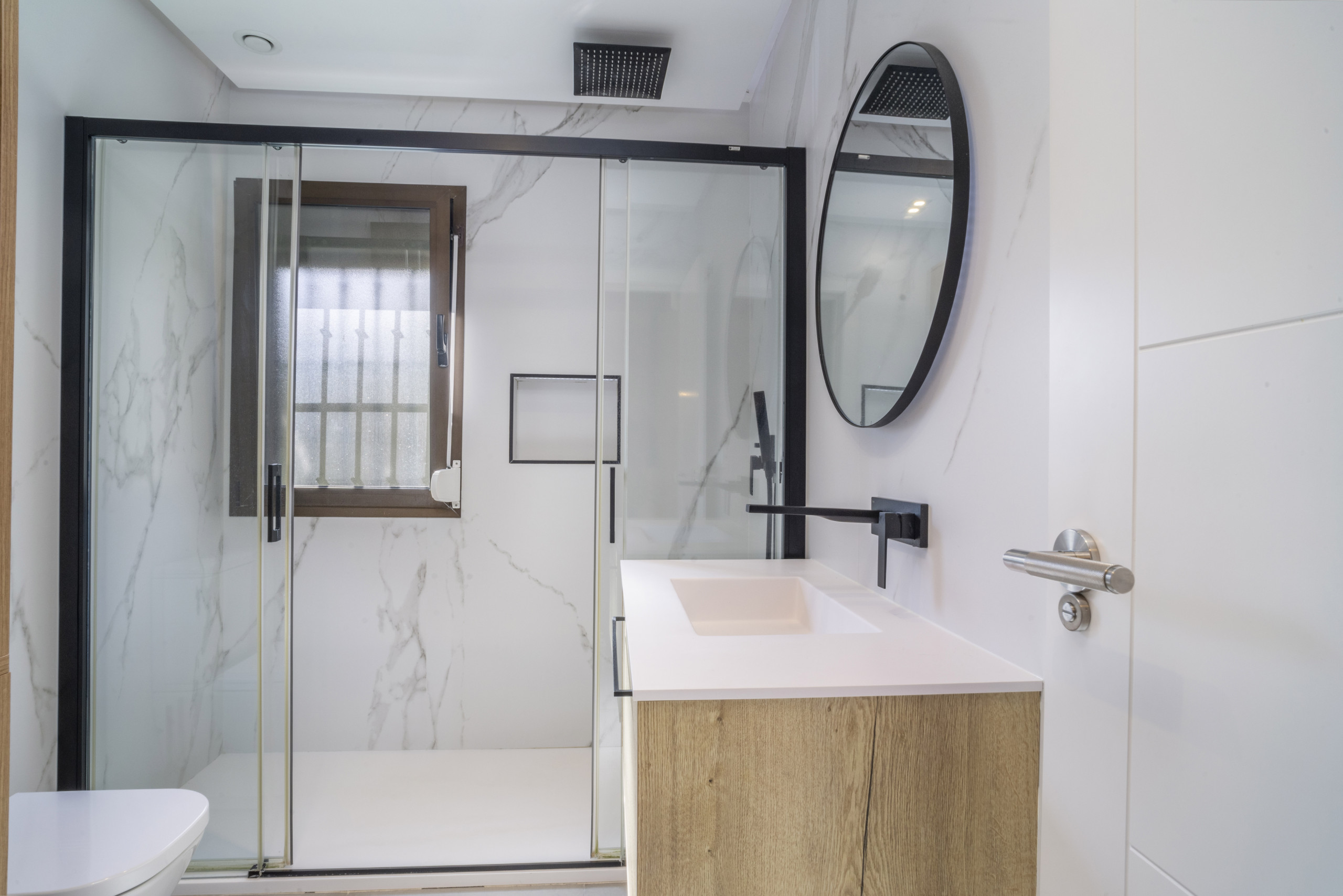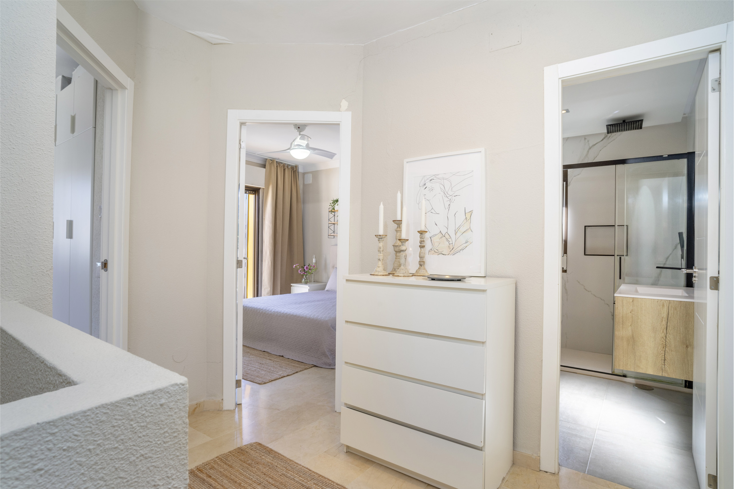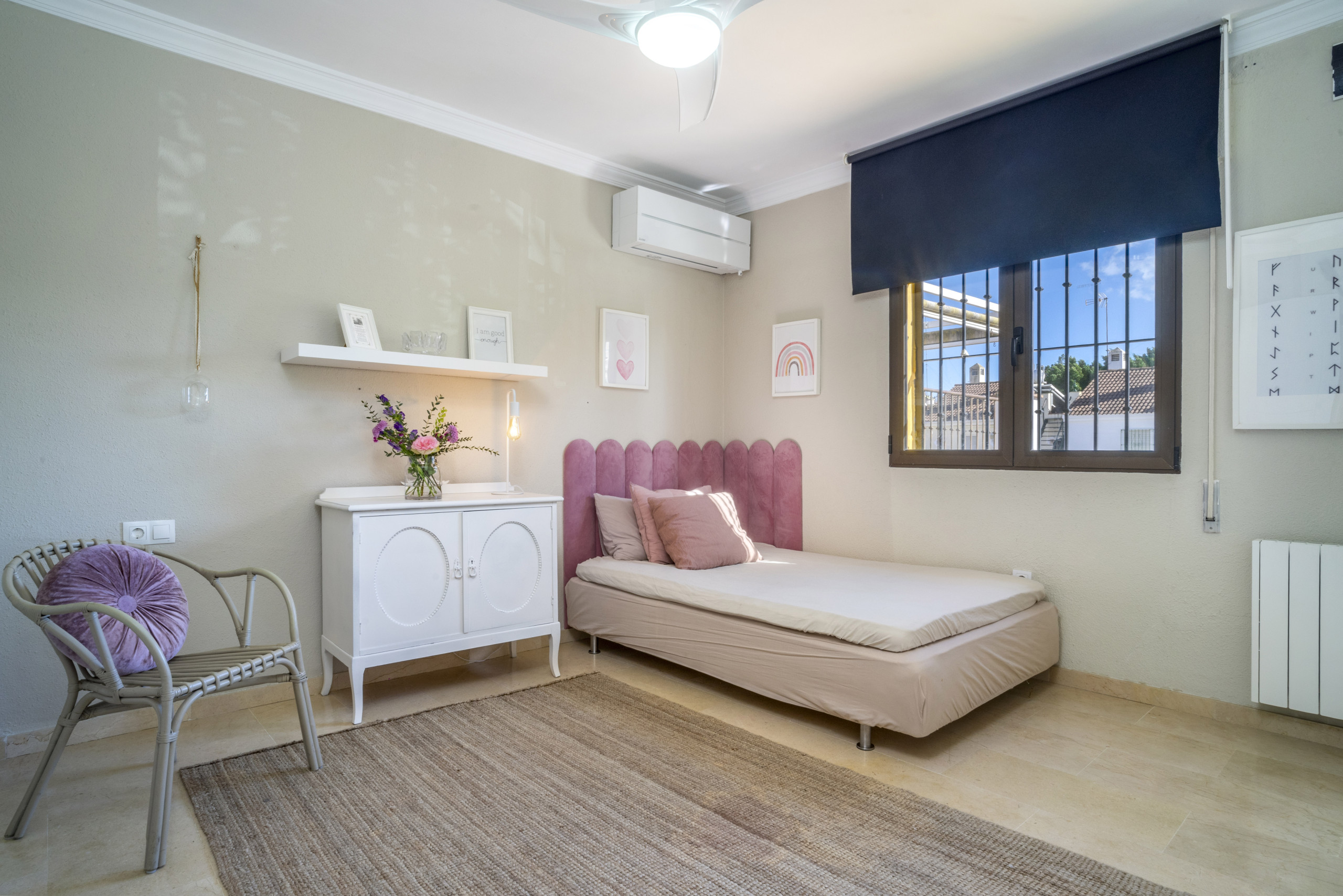 Ovanpå erbjuder fastigheten tre inbjudande sovrum, inklusive en generös master suite, ett flexibelt dubbelrum som kan delas upp i två enkelsängar, och ett barnrum. En höjdpunkt på denna våning är den rymliga terrassen, perfekt för att njuta av Marbellas vackra väder.
