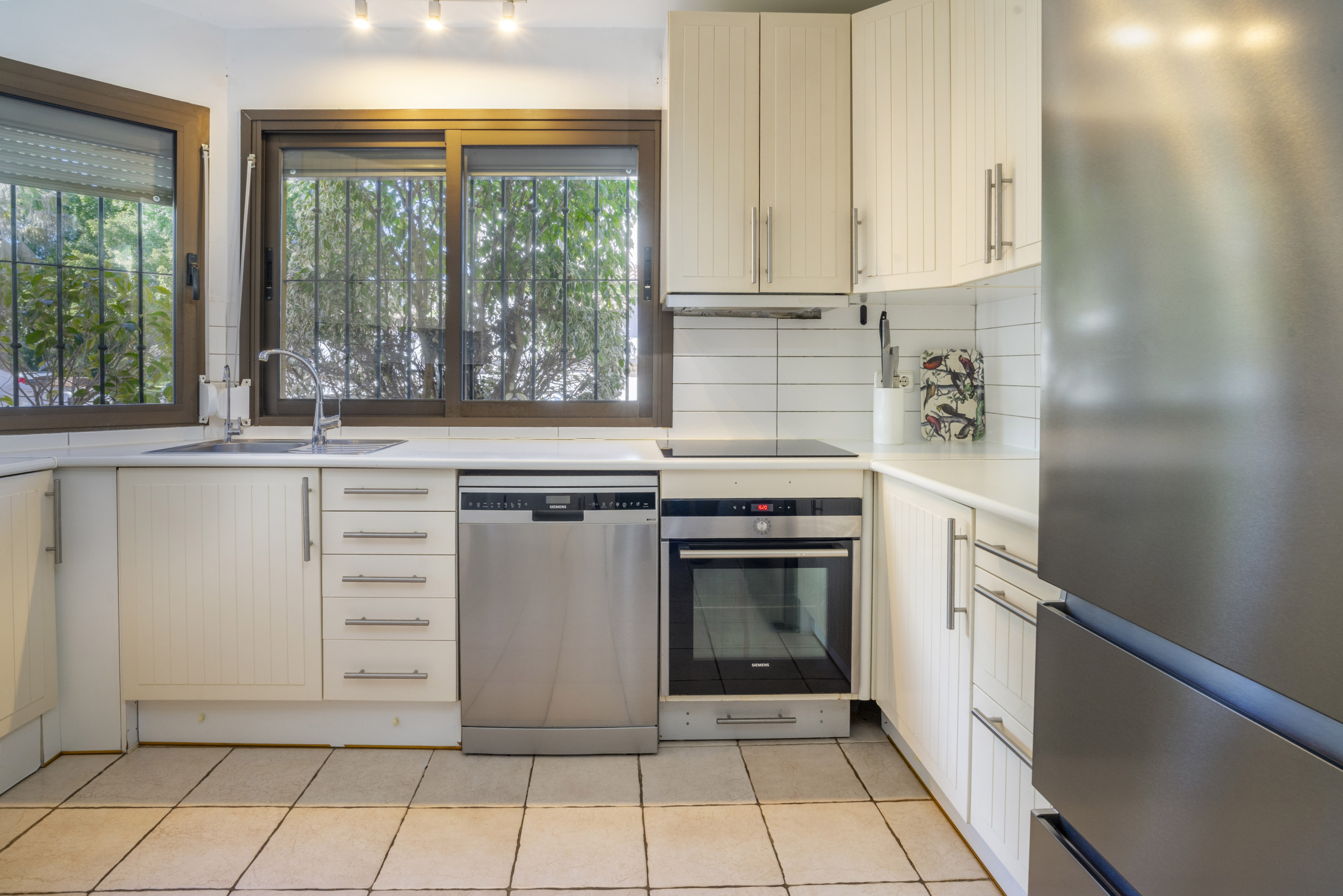 Fastigheten är byggd över två våningar. In i fastigheten för att hitta ett fullt utrustat modernt kök med högkvalitativa apparater. Det kombinerade vardagsrummet och matsalen är rymligt och ljust. Härifrån finns direkt tillgång till den täckta terrassen och den privata trädgården. Gå upp för trappan för att hitta alla tre sovrummen. Två av dem har tillgång till terrasser. Det finns också två rymliga badrum med fönster, ett av dem tillhör master-sviten. Terrass i norrläge med utsikt över Sierra Blanca-berget och samhällsområdena. Huvudterrassen har en grön utsikt mot söder, perfekt för att njuta av Marbellas solsken. På toppen av huset finns ett 24m2 solarium - föreställ dig att underhålla här med vänner och familj!