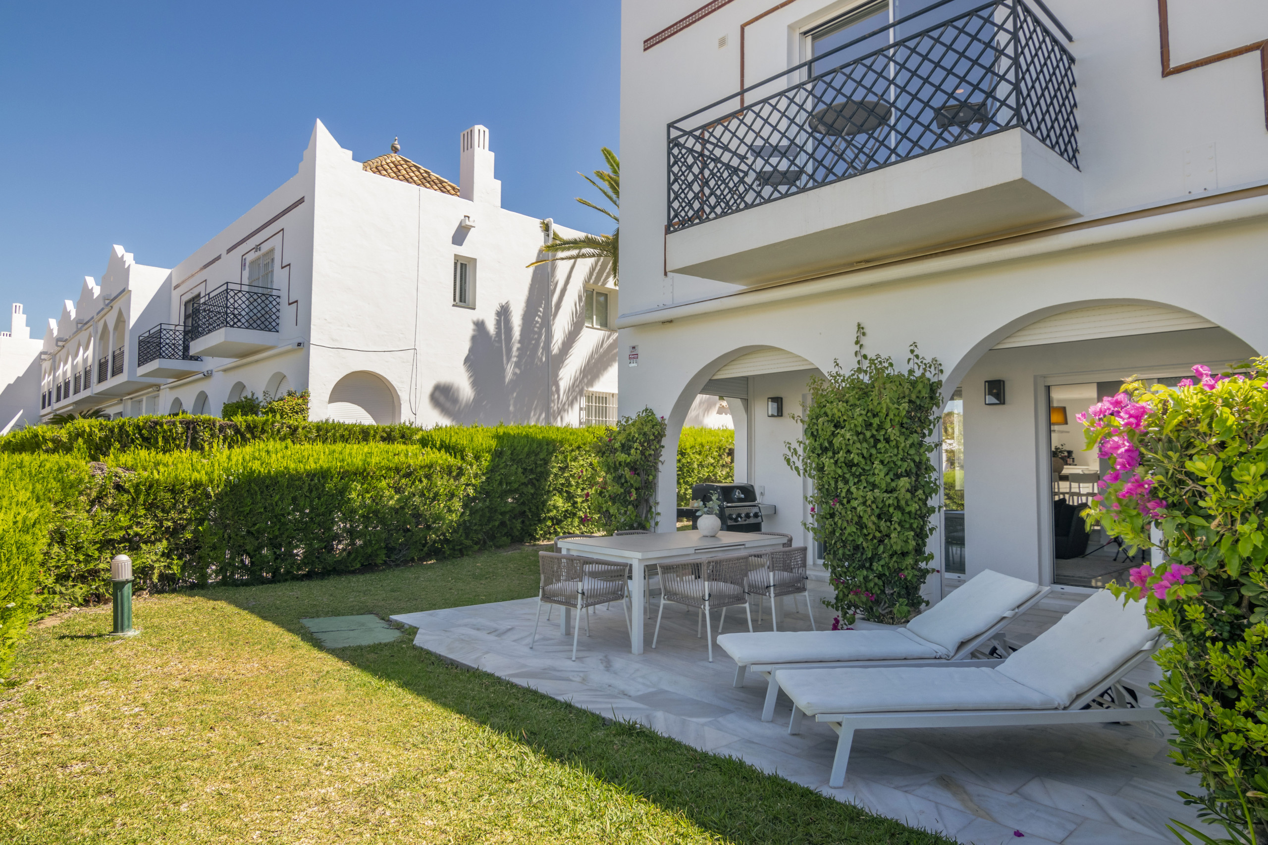 Vi presenterar detta radhus i västerläge med 4 sovrum och trädgård, beläget i ett av de mest populära områdena i Nueva Andalucia med gångavstånd till bekvämligheterna i Aloha, inklusive restauranger och kaféer. Dessutom ligger fastigheten mycket nära Aloha College, Aloha Golf Club och inom en kort bilresa till berömda Puerto Banus.