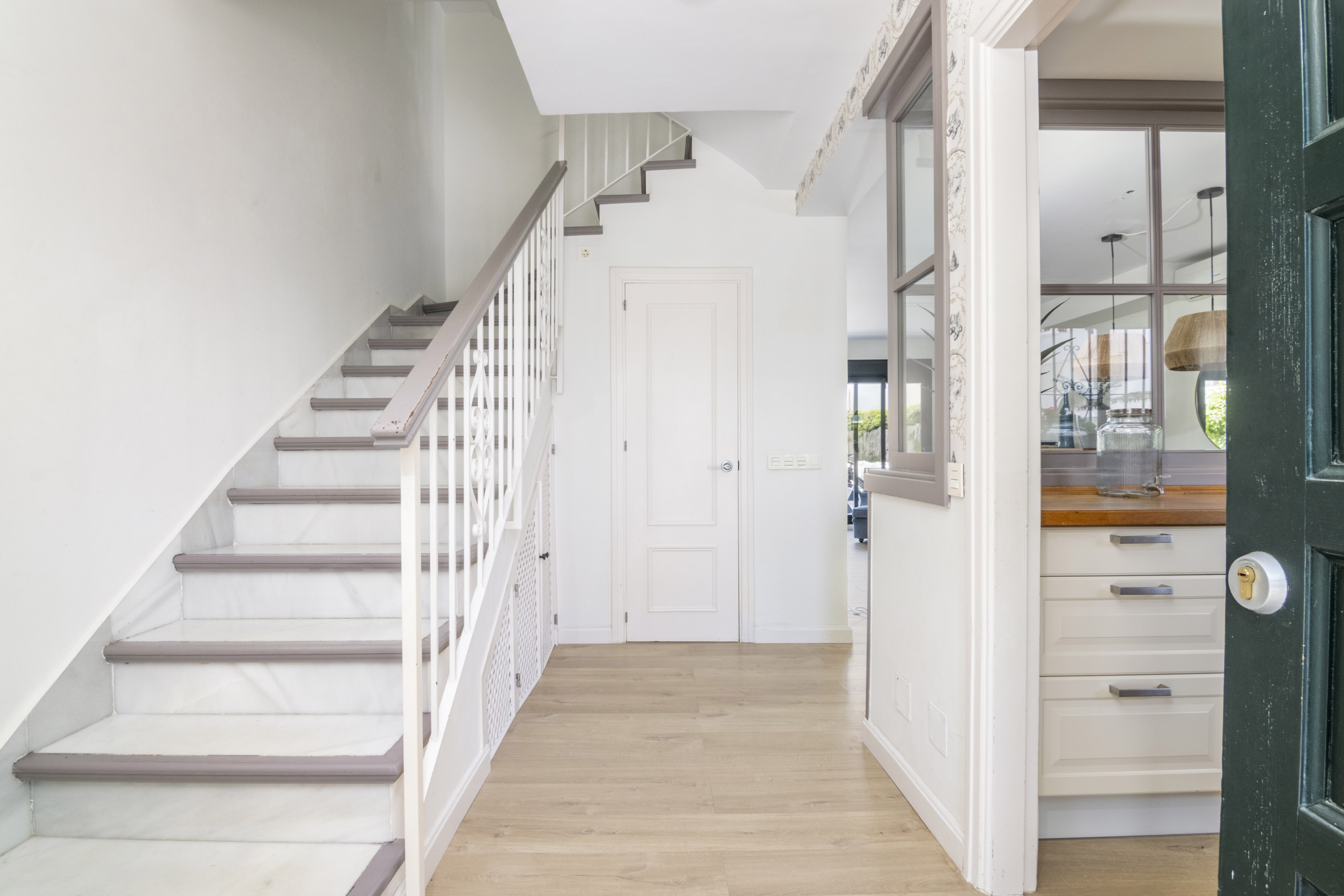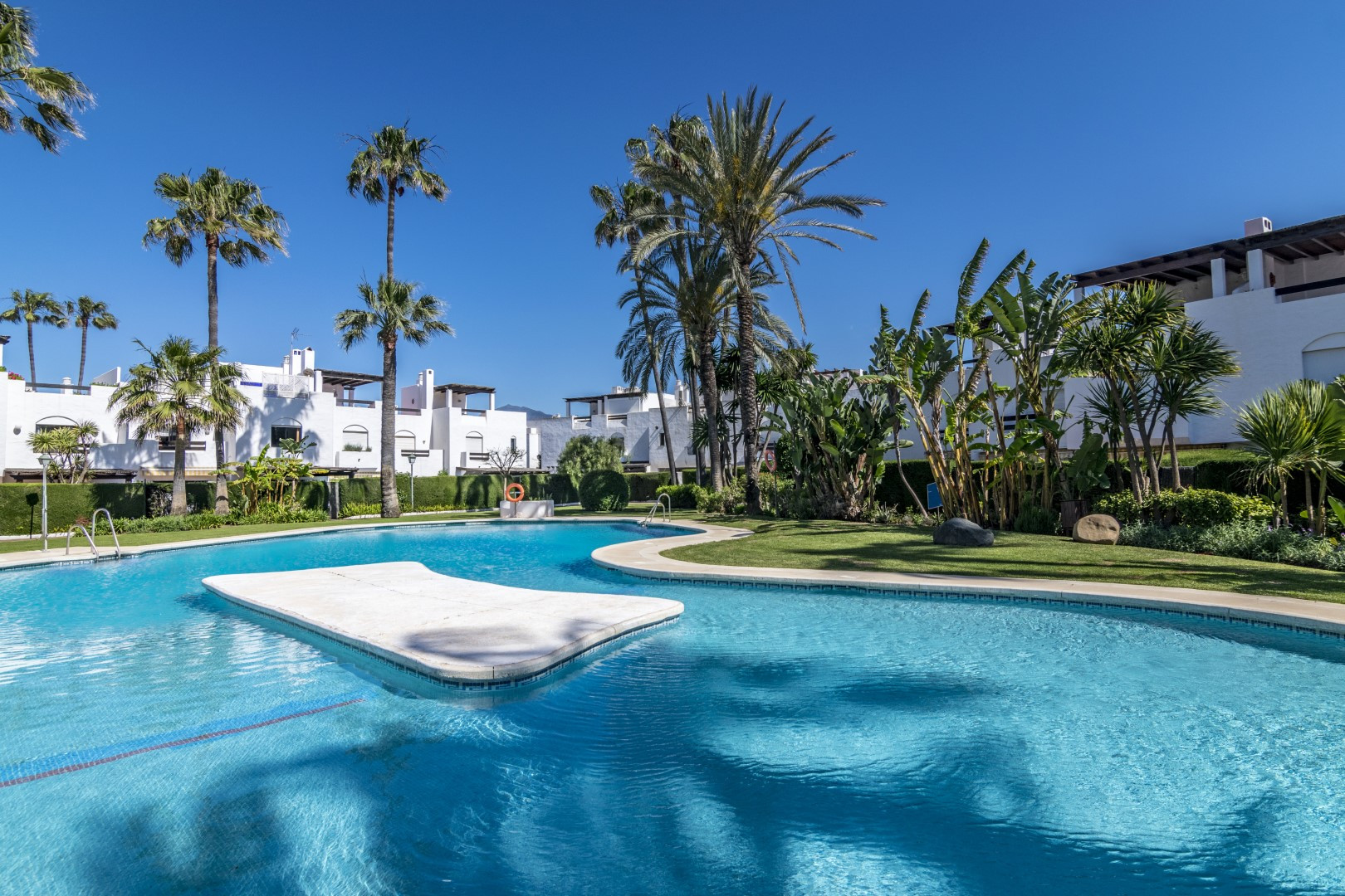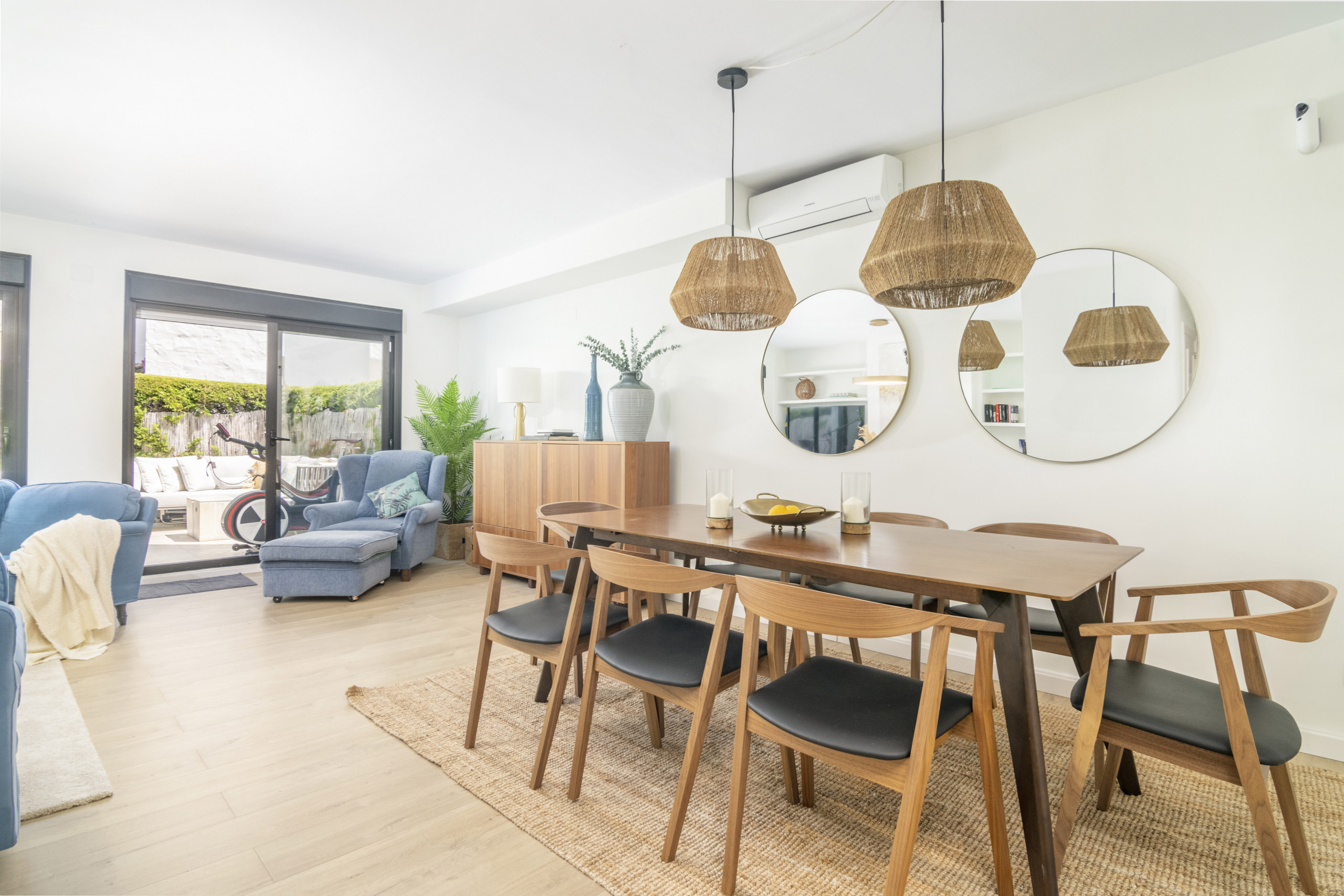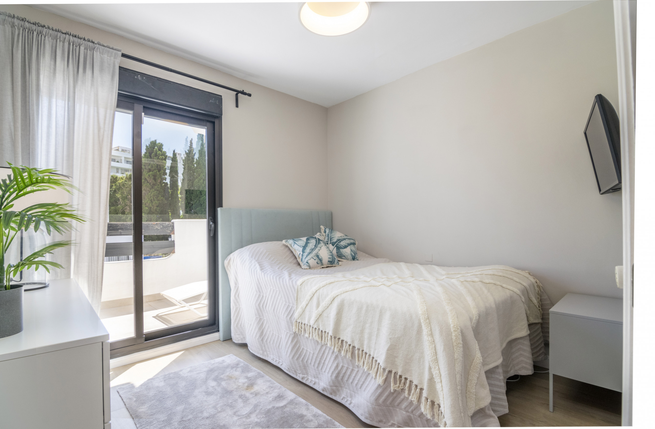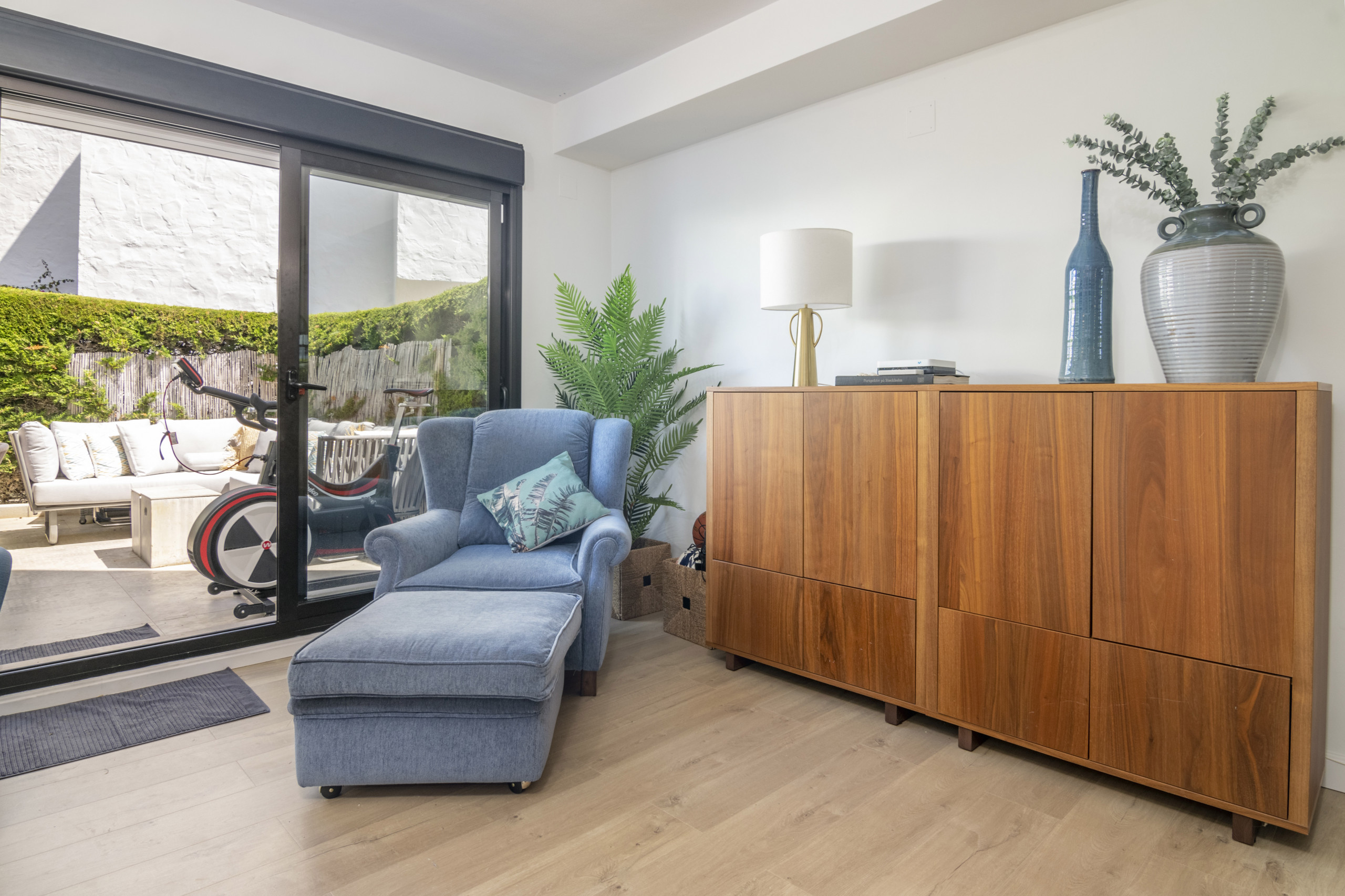 Denna lägenhet med 4 sovrum på bottenvåningen är verkligen ett semesterparadis. Interiören har nyligen renoverats till en bra standard, och erbjuder allt du kan önska dig på en semester i solen. Lägenheten är vackert utformad, i skandinavisk stil. Extremt mysigt, men ändå rymligt, perfekt för par eller familjer. Få ut det mesta av det spanska vädret på terrassen där du har både en lounge och ett matbord. Låt pojkarna grilla, medan tjejerna sitter runt utesoffan med ett glas vin, en perfekt semesterdröm. Boendet har också en privat takterrass med solstolar, perfekt för solning. Båda sovrummen är av stor storlek och alla har ett modernt badrum med badkar. En av de största funktionerna i denna fastighet är det korta avståndet till poolen. Inom några sekunder från terrassporten träffas du av lugnet i poolen och de vackra urbaniseringsträdgårdarna.