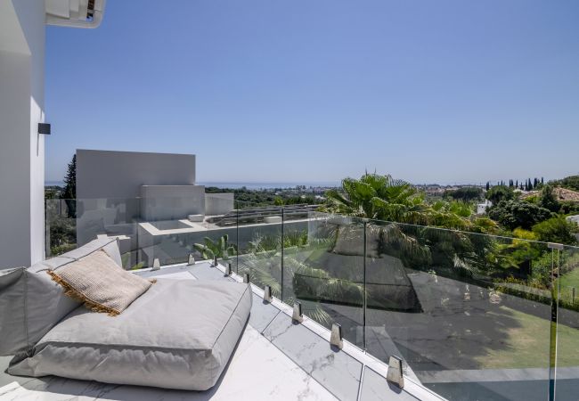 Ta en titt på denna helt nya lyxvilla för uthyrning som har ditt namn på den! En fantastisk villa som erbjuder oöverträffade nivåer av modernt boende med smakfullt utvalda möbler och design för att ge den den skandinaviska känslan. Beläget i Paraiso Alto, omgiven av de berömda golfbanorna, drar nytta av det upphöjda läget som garanterar en hisnande utsikt över Medelhavet där gästerna kommer att känna sig avslappnade från det ögonblick de anländer. Det är också bekvämt beläget nära lyxhotellet Villa Padierna med sina bekvämligheter i världsklass. En kort bilresa till stranden (6 minuter), golf, affärer, restauranger och kaféer innebär att detta är den idealiska basen för din nästa semester i Marbella.