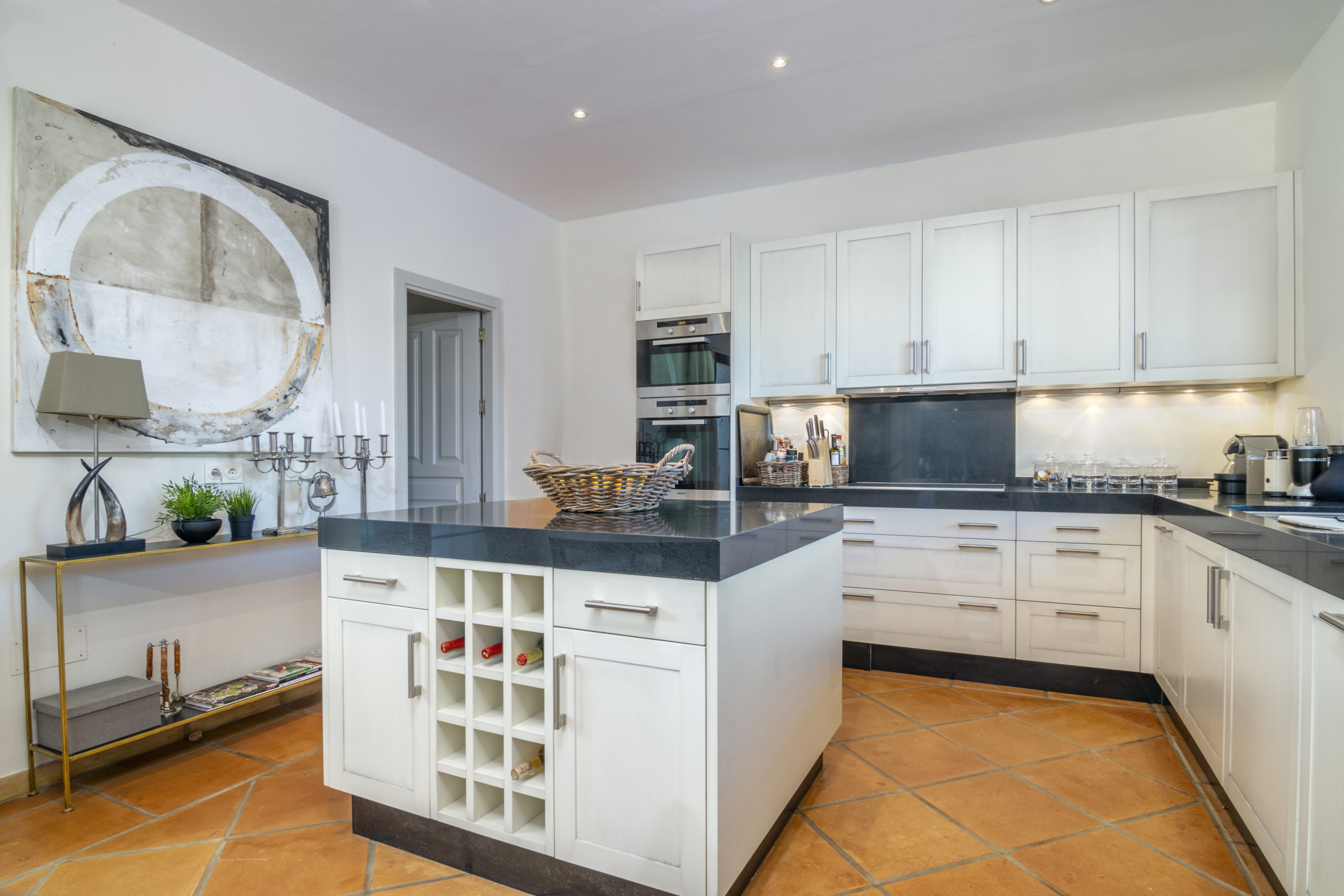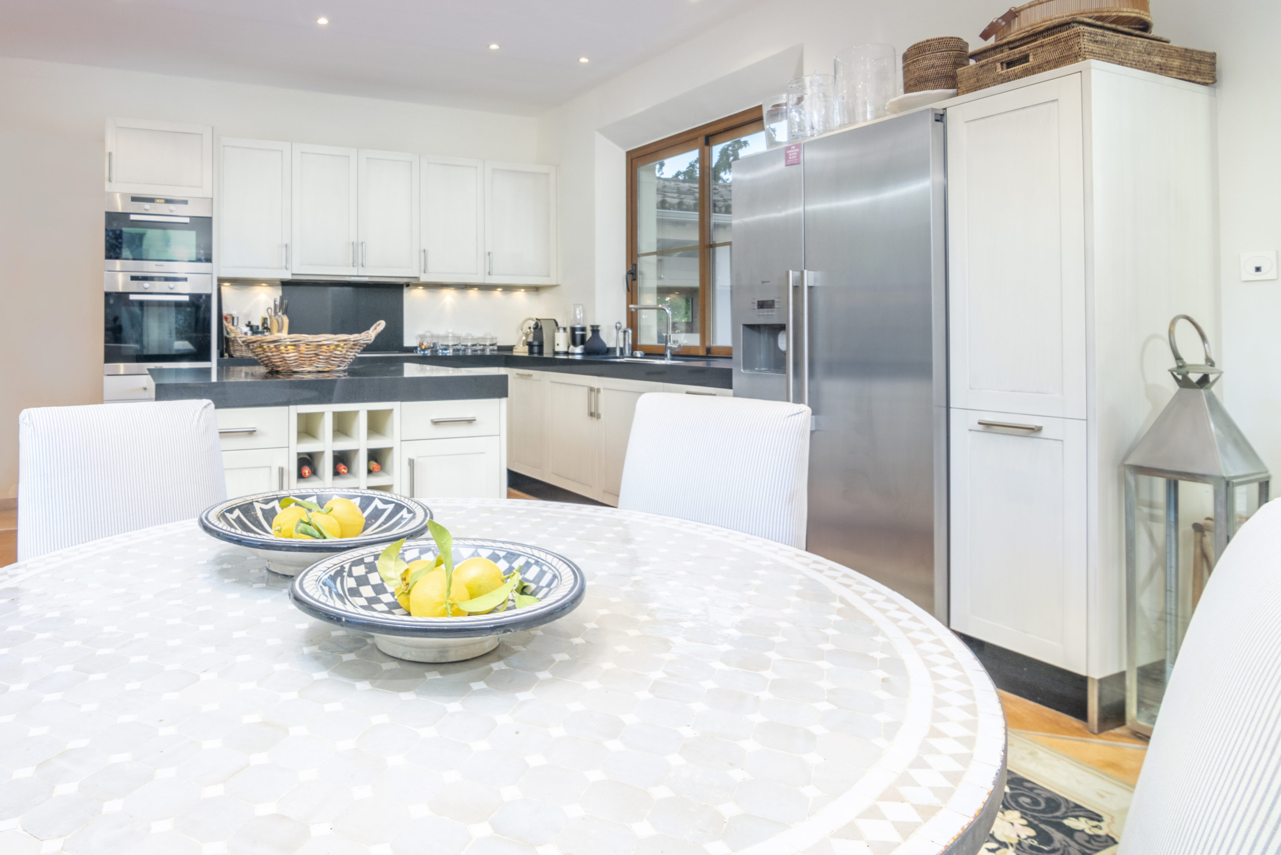 Fullt utrustat kök och matområde med direkt tillgång till utomhusterrassen