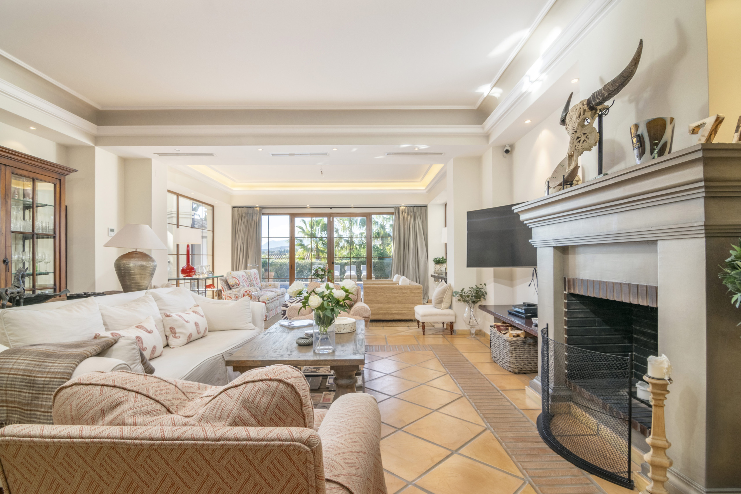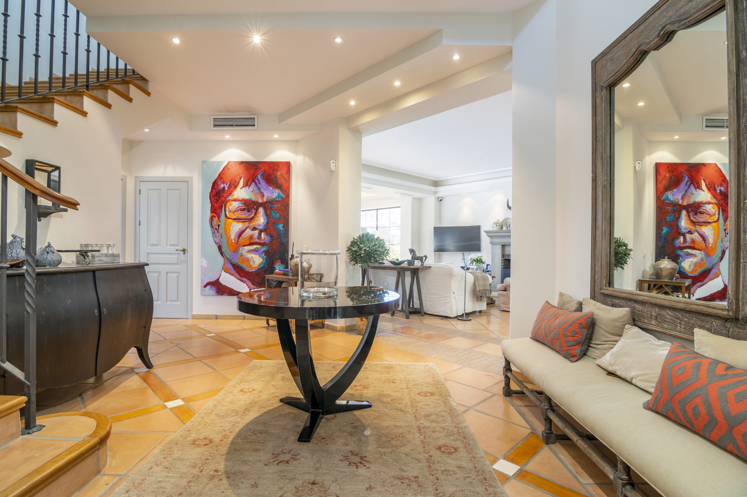 Presenterar Villa Las Brisas, en förfinad 5-sovrums samtida bostad där rena arkitektoniska linjer möter avslappnad medelhavelig elegans, perfekt belägen i hjärtat av Nueva Andalucía, bara steg från Los Naranjos golfklubb. Detta prestigefyllda område är känt för sina frodiga gröna fairways, världsklass golf och ett livligt liv med finrestauranger, boutikshopping och enkel tillgång till Marbellas gyllene stränder. Att bo här kombinerar lugn, lyx och bekvämlighet i ett av de mest eftertraktade hörnen av Costa del Sol.