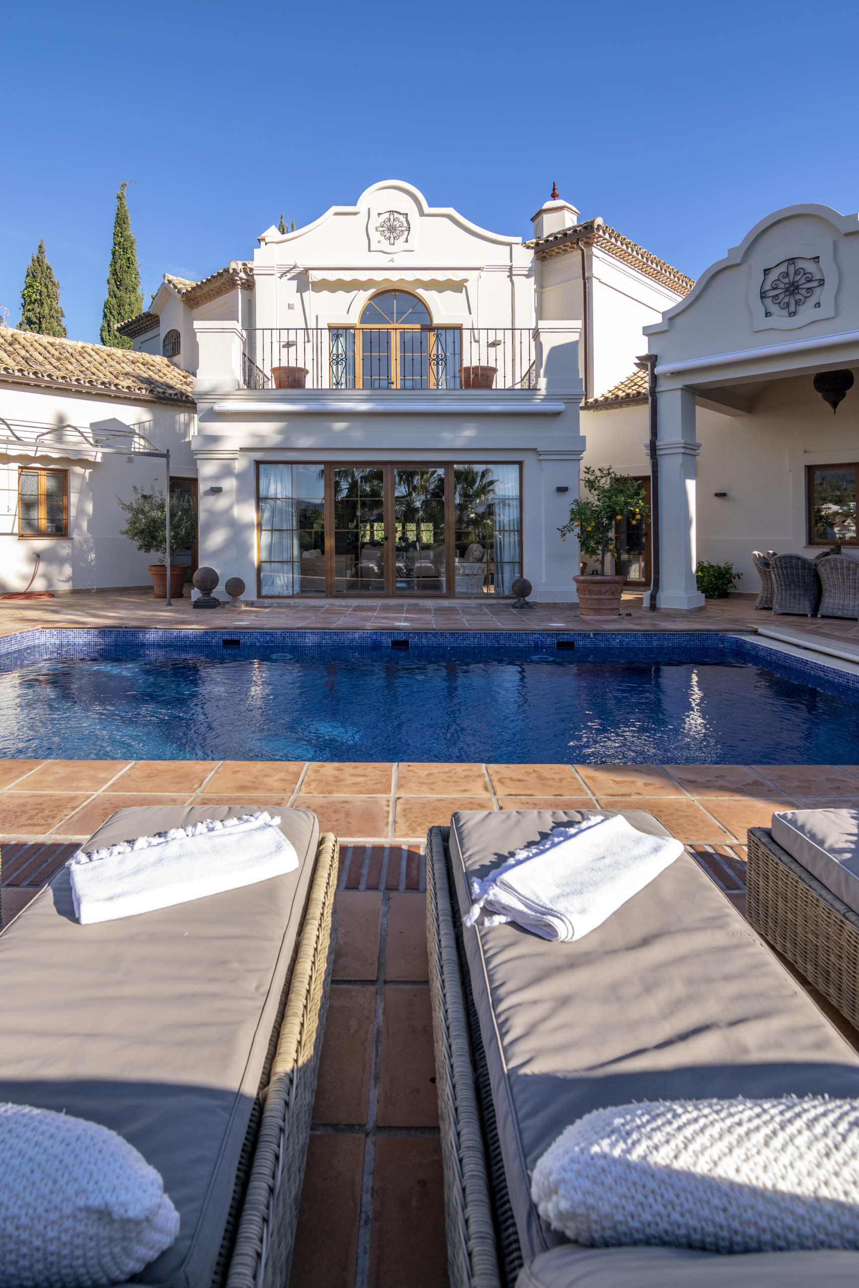 Letar du efter en villa för uthyrning som har gångavstånd till Los Naranjos Golf Club? Låt oss presentera dig för denna fantastiska villa som erbjuder allt - idealiskt golfläge, sofistikerad och andalusisk lyx. Njut av detta lyxiga hus - en verkligt lugnande tillflyktsort som låter dig koppla av och varva ner till fullo på din nästa semester.