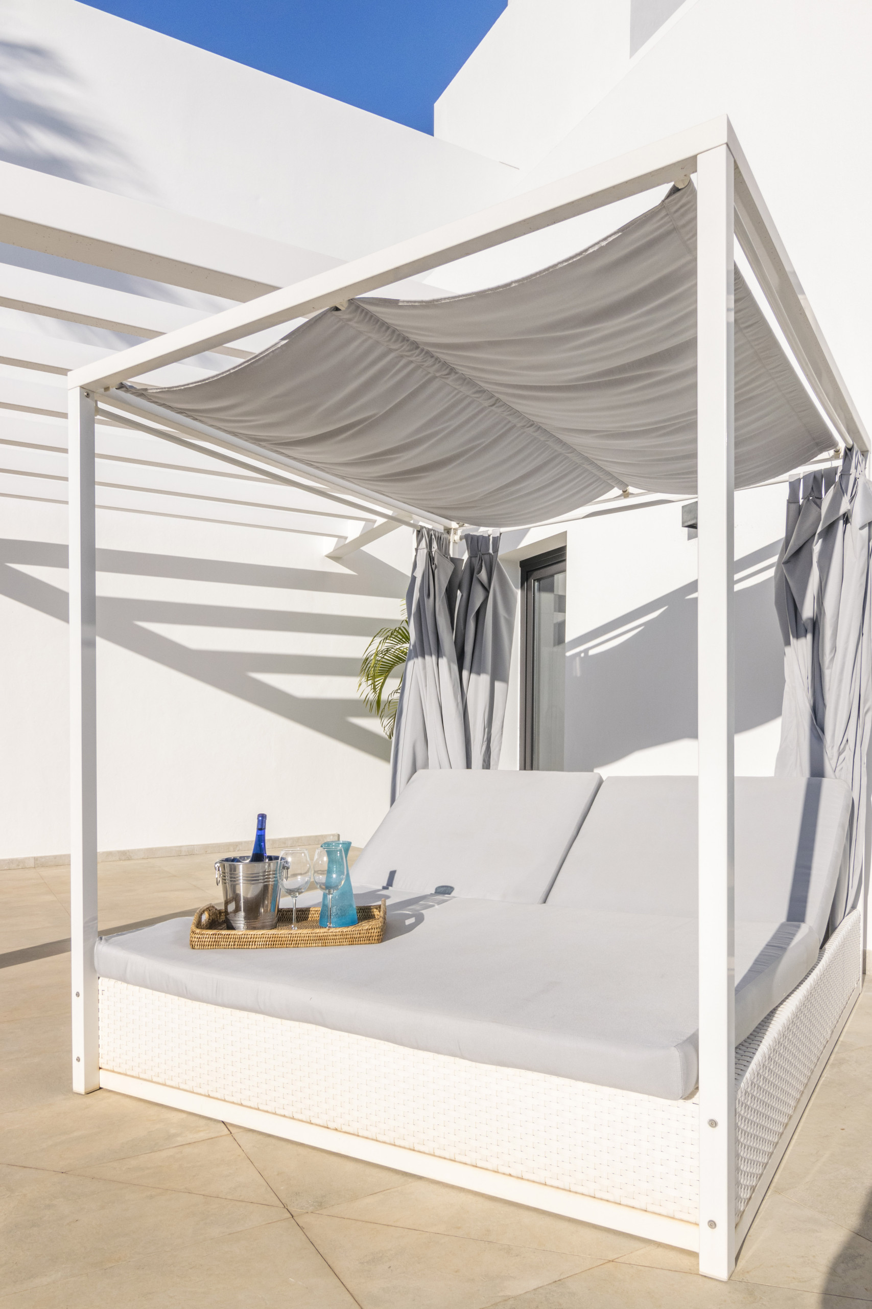 Denna fastighet är ljus, ljus och extremt rymlig. Sovrummen är bra storlek med moderna badrum och det finns en magnifik takterrass med dusch, grill, pentry, matbord och bekväm soffgrupp. Detta är den idealiska platsen för att njuta av tropiska Rooftop cocktails, aptitretare, lunch och middag med vänner och familj medan du beundrar den otroliga utsikten och magiska ljusrosa medelhavssolnedgångar!